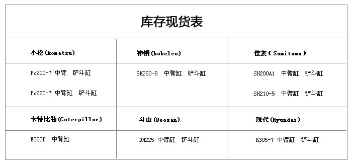 小松PC系列挖掘機液壓缸、神鋼SK系列挖掘機液壓缸、卡特E系列挖掘機液壓缸、住友SH系列挖掘機液壓缸、現(xiàn)代R系列挖掘機液壓缸、大宇(斗山)DH系列挖掘機液壓缸……